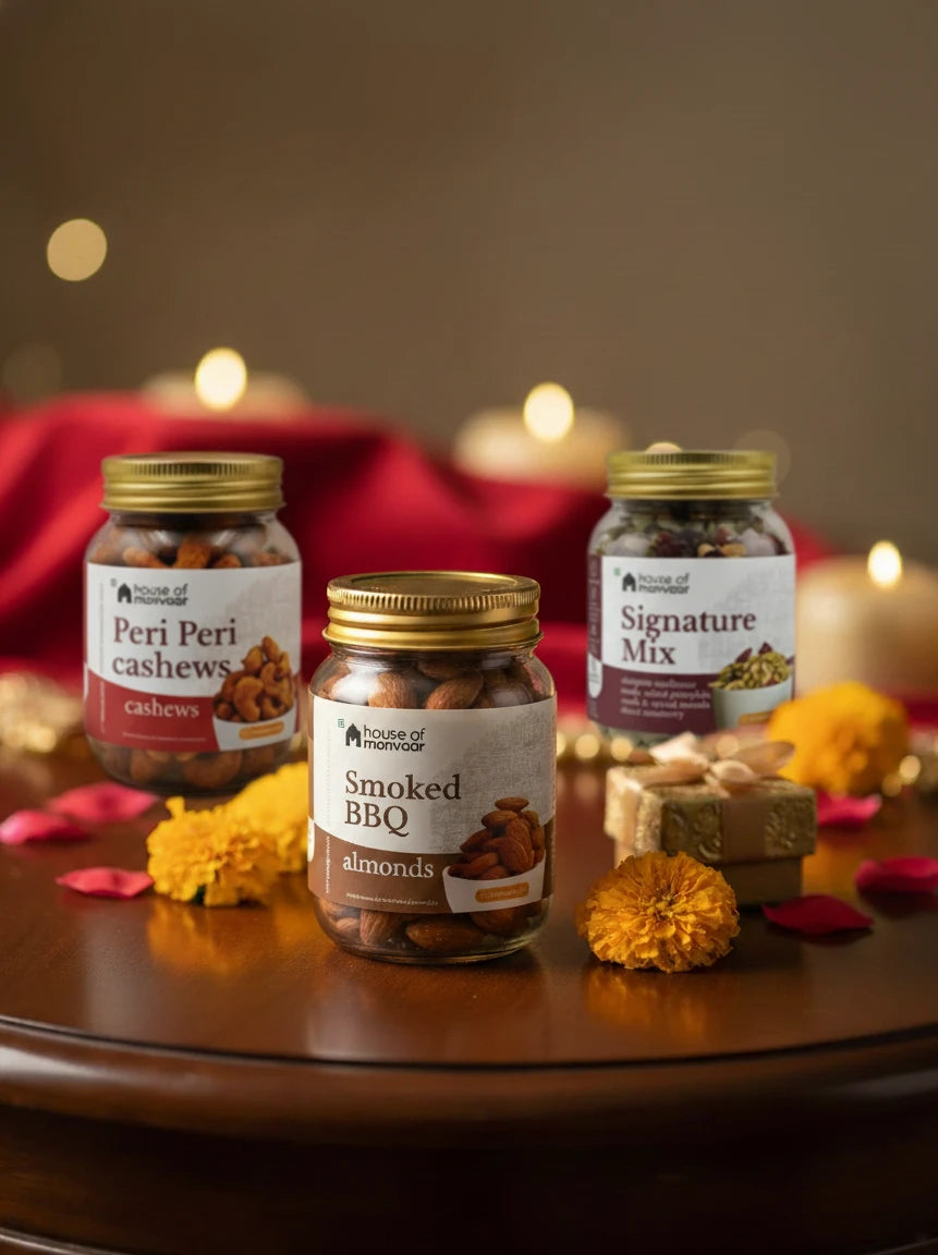 House of Manvaar came through for me with their thoughtful packaging and a delicious set of cashews and almonds for my family. It’s not always you can reach out to a business for last minute Diwali gifting and they take it on as a personal/family assignment. The Black Pepper Cashews were a personal favourite amongst my parents, while my in-laws enjoyed the Smoked BBQ Almonds. There’s nothing like the joy and assurance of knowing that when you are away from family they still receive the love of Diwali and in a healthy way.